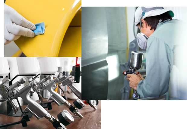 塗装によってプラスチックや金属の素材に、